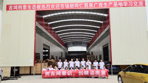 人才是企業發展的第一資源!2020年8月16日,深諳人才培養重要性的吉鴻總部,再次組織了一場以各區市場部員工(以下簡稱學員)為主角的交流學習活動。在吉鴻營銷中心兼商學院負責人柯立新以及廣西生產基地曾廠長的帶領下,各位學員深入廣西生產基地、聚焦產品生產一線,用眼觀摩吉鴻創意生態板的生產流程,用耳傾聽曾廠長對先進設備及高新技術的介紹與講解,用腦思考板材產品的環保、款色、質量、工藝等方面的優化升級問題,用心牢記產品亮點、賣點等業務銷售知識,在整個學習交流的過程中受益匪淺。