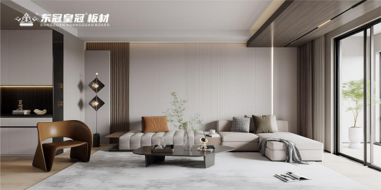當(dāng)花色雅致與品質(zhì)硬核形成合力,東冠皇冠板材以空間為畫布,讓“光環(huán)”自然流淌。它從家居整體性出發(fā),讓每塊板材與環(huán)境和諧共生。不同風(fēng)格場景中,其定位精準(zhǔn):現(xiàn)代簡約客廳,淺色系板材配金屬線條,簡潔利落且細(xì)膩紋理在光影間若隱若現(xiàn);新中式書房,帶天然木紋的板材與水墨呼應(yīng),山形紋、直紋等盡顯東方韻味。這種適配性源于對空間美學(xué)的理解——板材是“底色”,精心打造的紋理既顯特質(zhì),又為其他元素留空間,達(dá)成“1+1>2”的效果。