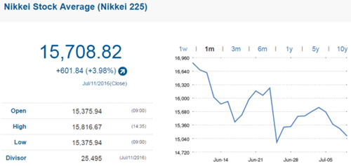 個股新聞方面,任天堂重磅手游《Pokémon Go》7月初剛剛發布,便火速登上暢銷游戲榜榜首,北美地區上線僅三天游戲服務器便崩潰三次。這款游戲的最大亮點就是使用了一直備受關注的AR技術,這給了玩家前所未有的游戲體驗。由于該游戲大熱,發行方任天堂(Nintendo)股價在上周五大漲10%之后,周一早盤一度飆漲25%。截至收盤,任天堂上漲24.52%,報20260日元。
