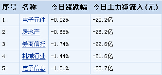 板塊方面,1個行業主力資金凈流入,60個板塊主力資金凈流出。主力資金凈流入、凈流出前5行業如下: