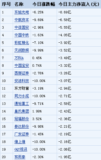 今日兩市主力資金凈流入-377元,其中滬市-107億元,深市-270億元,中小板-102億元,創業板-67.6億元。單日7只個股凈流入超過一億元。