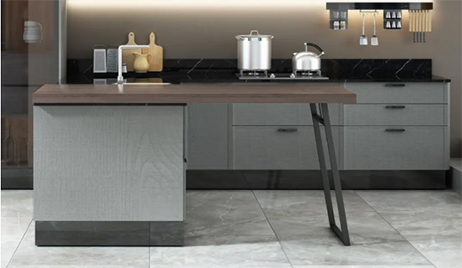 櫥柜門板采用了環(huán)保PET材料,獨特的凹凸質(zhì)感具有很強的視覺立體感,輕奢的氣息悠然而發(fā)。