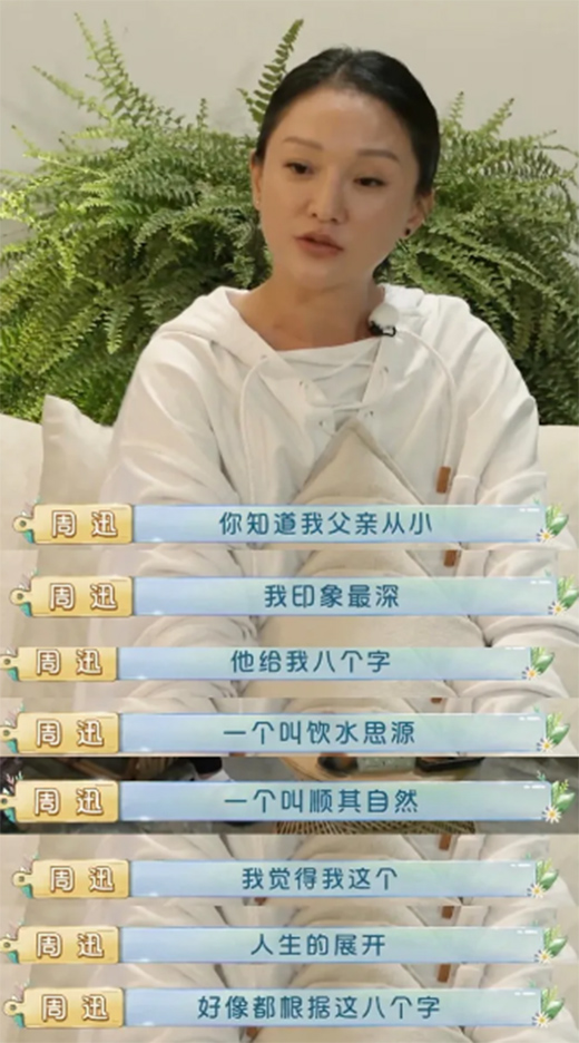 這深情的一幕,讓周迅回憶起自己的父親。他同樣地睿智而沉默,把對女兒的愛都藏在簡短的八字箴言里。