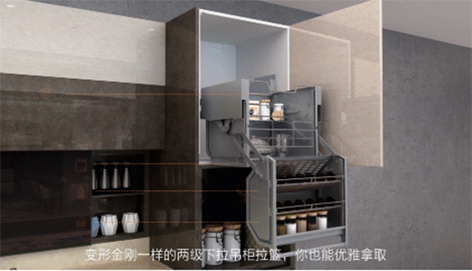 并在細節處埋了不少小心思。一拉就能取物的二段式雙層吊柜拉籃,櫥柜轉角區域也不放過的飛碟轉籃,還有絕不往地下漏一滴水的碗碟拉籃……
