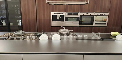 美食創造離不開精湛的烹飪技巧,廚房空間離不開設計的巧妙構建?ɡ麃啠鶕䦶N房戶型和大小,依照客戶使用和需求,科學規劃烹飪動線,合理運用空間設計收納,讓一體無縫工藝恰如其分地應用在不銹鋼臺面和柜體上,不管是設計還是工藝的創新,都帶來廚房空間的無限可能。