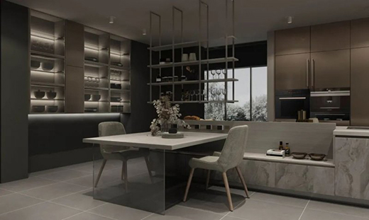 酒柜的設計更彰顯獨特的品位,不僅可以擴大儲物空間,還能增加廚房的美感。