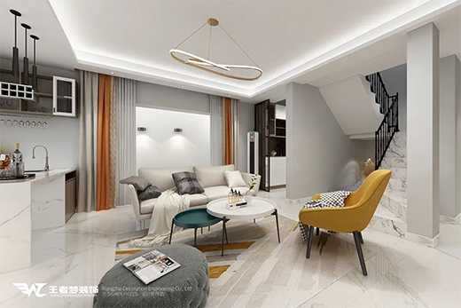 去掉主燈改為嵌燈,利用自帶懸浮效果的燈帶設計,與筒燈、射燈等組合起來豐富頂面,更能強調一種柔和、明亮、飽滿而富有情調的氛圍。