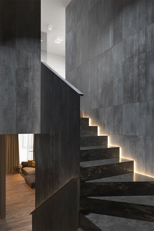 墻面燈帶設計適合沒有做吊頂的住宅,在客廳、臥室的背景墻,樓梯、過道的側面墻,采用燈帶的設計,也能夠為空間區域增添優雅內斂的氣質。