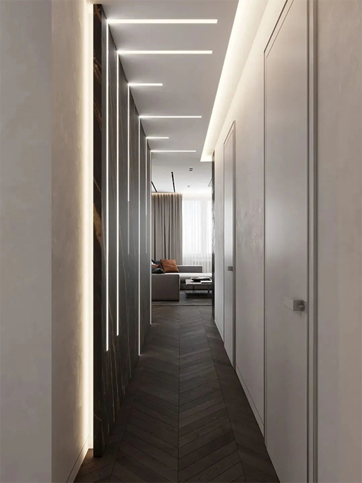 以燈帶代替?zhèn)鹘y(tǒng)踢腳線,能夠起到照明作用,讓行走更安全,同時也更加美觀。
