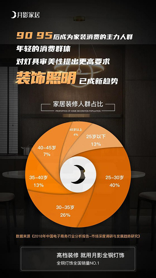 人們生活水平的提高帶動了消費品質的升級,在家居生活中對燈飾產品的需求越發多樣化、個性化。之前人們對燈具的認知和要求僅限于節能,即在功能上要求比較多,在外觀上并沒有太多要求。隨著消費趨勢的升級, 90 和 95 后成為家裝消費的主力人群,他們在選擇燈時首先看的是燈飾的外觀,對于功能性反而沒有那么多的要求。