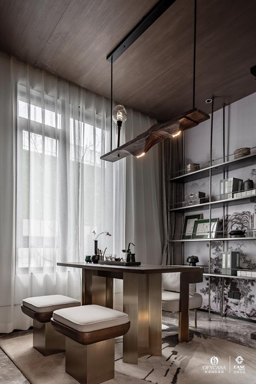 將現代東方的元素,與整個設計一脈相承,淡淡的水墨,滿古韻的裝飾在深沉中顯露人生的智慧。大雅至善,靈動毓秀,新中式元素在工藝、材料的搭配中,演繹出一種富有內涵的東方質感。