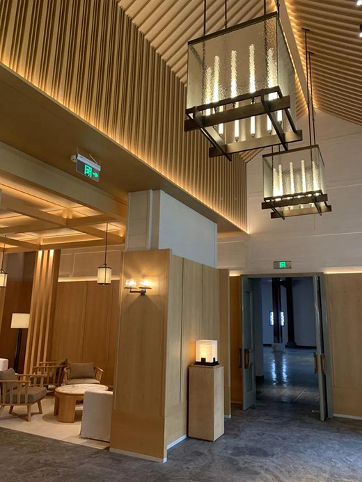 南湖賓館燕來堂采用羅格朗全套智能調光系統和空調管理系統,將VRV空調和智能照明系統融合,統一場景控制,包括精細化空調控制、燈光調光控制、電動窗簾控制。智能產品讓整個燕來堂電氣控制化繁為簡,實現光環境和溫度環境的完美結合。