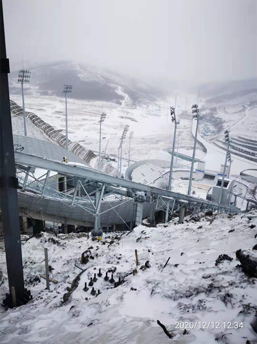 電梯及鋼構的主體施工從2020年底開始,到2021年4月份基本完成,主要的施工都是在低溫露天的環境下,工人們頂著寒風和冰雪,付出了極大的艱辛。