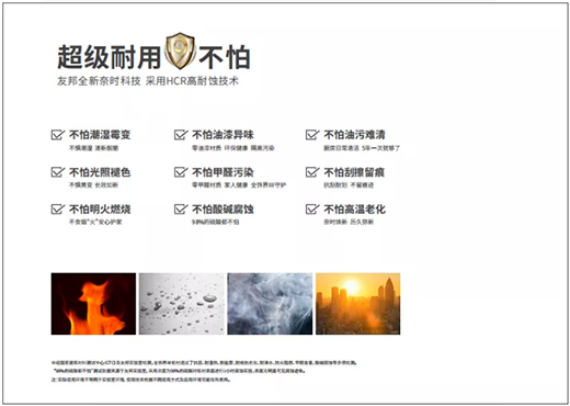 家的質感與材料的品質密不可分,全飾界Ⅲ的板材均覆蓋有奈時膜。奈時科技助力使得產品的功能性更上一層,具有9不怕特性,即不怕潮濕霉變、不怕光照褪色、不怕明火燃燒、不怕油漆異味、不怕甲醛污染、不怕酸堿腐蝕、不怕油污難清、不怕刮擦留痕、不怕高溫老化。多位一體的全飾界Ⅲ,和各類難題隱患說拜拜,是幸福家的正確打開方式。