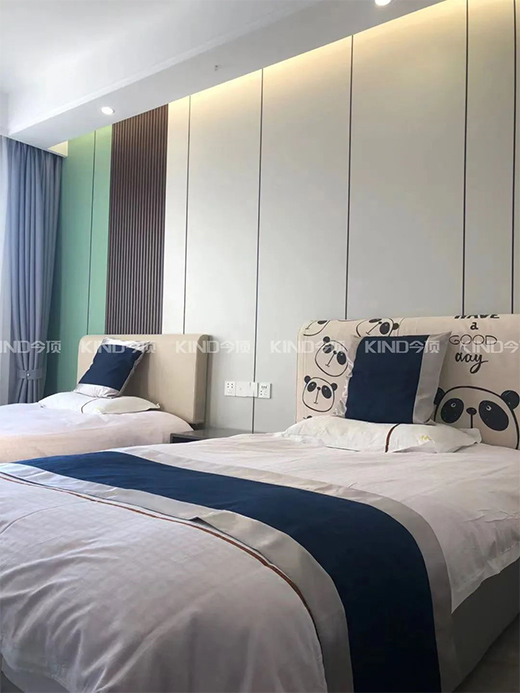 酒店裝修的目的無非是為了給住宿顧客一個具有質感且舒適的住宿環境。今頂纖香木墻板是今頂研發的一種新型綠色環保墻面材料,兼顧環保與裝飾等特性,符合低碳減排、減少環境污染的可持續發展理念。除了用在家裝,用在酒店等工裝場景也再適合不過了。