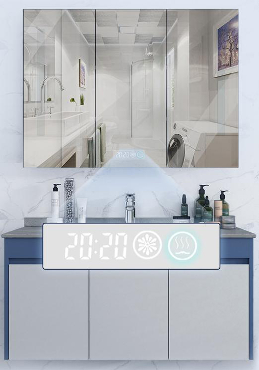 高清智能鏡配置是四季沐歌德爾菲智能浴室柜的一大亮點,智能鏡面不僅讓整個衛浴間增加了幾分科技感氛圍,還能為消費者提供專業美妝鏡功能。高清鏡面擁有觸屏控制鍵和LED顯示屏,鏡面可顯示時間、溫度及進行功能調節。智能鏡具有無極光調節、一鍵除霧,一鍵除水漬等功能,能適應不同的應用場景,打造不同燈光效果,從此告別霧鏡的煩惱。