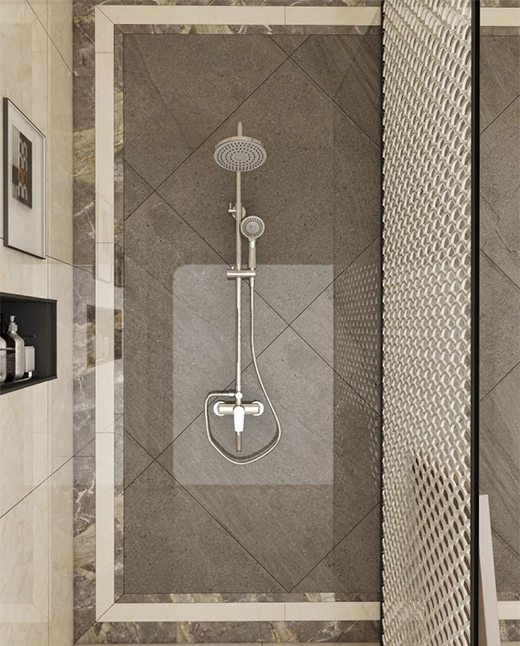 整齊干凈,井然有序,傳統(tǒng)文化中對于中軸對稱的迷戀,也將在淋浴房中體現(xiàn)得淋漓盡致,淋浴花灑在“盒子”內(nèi)扮演了一個十分重要的角色,畢竟?fàn)I造一個半開放式的空間從某種意義上來說,就是為了更好地沐浴。