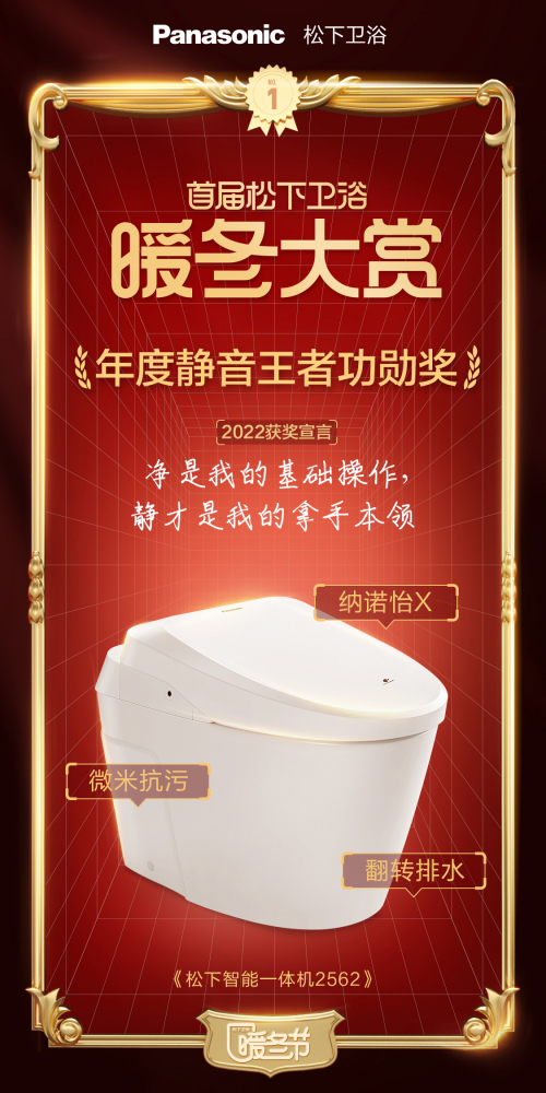 2022年12月23日-12月26日,松下衛浴舉辦首屆暖冬節,綜合今年衛浴選手的精彩表現,進行了一場別開生面的衛生間頒獎盛宴。松下電子坐便蓋選手、智能一體機選手、電汽化浴室柜選手和花灑選手等以各自的優勢提前鎖定獎項,來看看這是你心中理想的獲獎(購物)清單嗎?