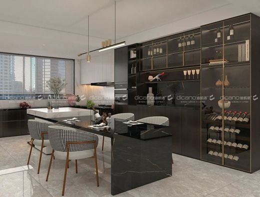 開放式廚房設計,對于家里有孩子的家庭,即使在做飯也可以了解到孩子的狀況,安全也方便,也實現了家庭互動體驗,增加居家時光的品質感。