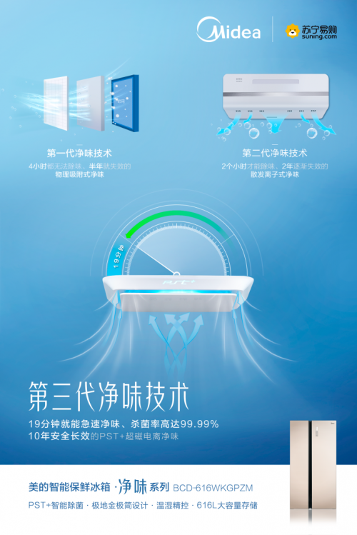 作為美的冰箱2019年戰(zhàn)略系列新品之一,美的冰箱凈味系列自5月上市以來深受消費者青睞,其背后反映的是當代消費者對于“食材保鮮”上的異味串味和細菌滋生等營養(yǎng)健康問題的關注度越來越高。在此大背景下,美的冰箱聯(lián)合中船重工718軍工研究所,創(chuàng)新研發(fā)第三代冰箱凈味技術——PST+超磁電離凈味技術。