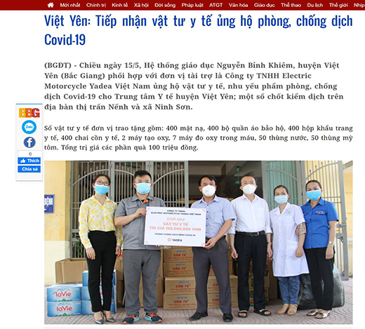 (北江省電視臺(tái)及報(bào)紙對(duì)于雅迪慈善抗疫物資捐贈(zèng)的報(bào)道)