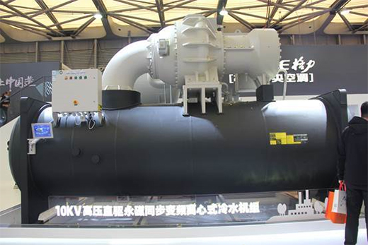 格力在2021中國制冷展期間推出的10kV高壓直驅永磁同步變頻離心機組,涵蓋了高壓永磁變頻驅動技術、大功率10kV高速永磁同步電機技術、高速電機直驅雙級葉輪、高效雙級壓縮補氣技術等格力自主研發的核心科技,在節能和效率上表現更加優異,機組單機頭冷量可達3000RT,比普通離心式冷水機組節能40%以上。同時,這款新品為全球首臺專用于制冷離心壓縮機的大功率10kV高速永磁同步電機,全負荷狀態下電機效率能夠達到96%以上,最高效率能夠達到98.2%。