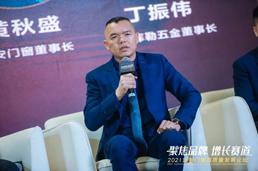 裕安門窗作為2021定制門窗高質量發展論壇的特邀嘉賓,董事長黃秋盛發表自己的觀點,裕安門窗自成立以來,16年只堅守一件事,就是做好門窗,一直堅守“高品質,高標準,高服務”為理念,為億萬家庭提供高品質的美好生活,打造“裕愛筑家,安心靜享”的生活環境。先后獲得多項創新和專利技術,但是成績只代表過去,重點還是要看未來發展 ,2021年門窗行業應該設定更高的目標,放大格局,關注長期利益,謀篇布局,齊心協力共贏未來,將門窗行業推上更高的頂端是每個門窗行業長期堅守的目標。