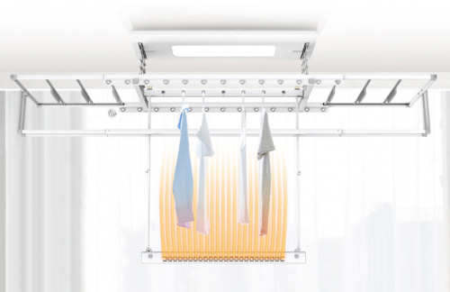 下拉式自下而上的烘吹技術,讓熱風不再從衣領吹至衣底,而是衣底吹向衣領,烘干口兩側出風,打造3D熱氣環繞,快速高效,一鍵自動升降,衣被天天享受陽光之暖。