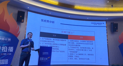臨近會議尾聲,皇雅門窗系統營銷中心總經理張勇先生為大家帶來了《共享模式·低成本高效拓展》專題演講。在演講中,張總談到:皇雅區域工廠新模式不僅有效縮短當地生產周期,減少物流貨損,讓安裝售后服務響應更加迅速;還能在一定程度上減輕生產負擔,降低投資風險;并賦予消費者監督生產的權利,使得消費更加透明、更加放心。