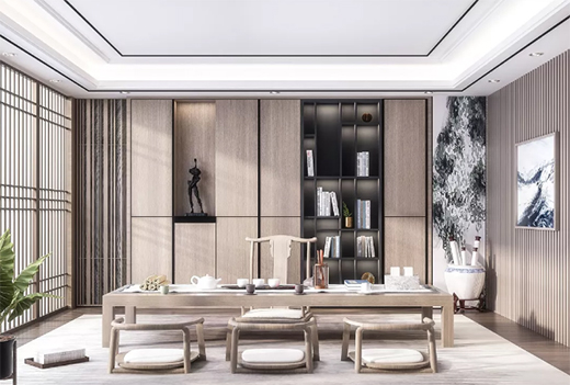 王牌門業設計的簡單素雅的新中式茶室空間,