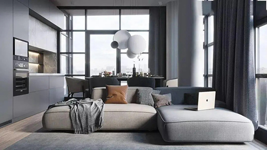 該案例的色彩搭配,以淡雅輕松的暖木棕與粉灰色營造一個自然、輕松的家居環境,建立與自然的連接,享受自然色彩帶來的舒適與安心。具有強大的包容性及延展性,同時又體現了自由與深沉的一個空間平衡。