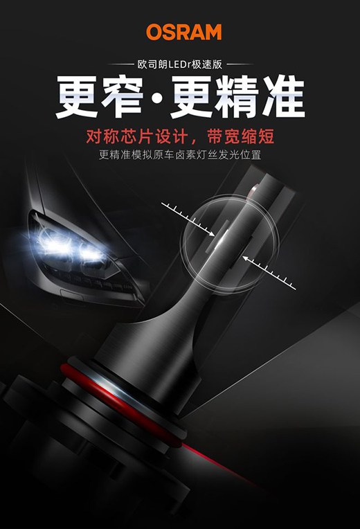 歐司朗新款替換型LED車燈迅亮者極速版采用對稱芯片設計,更精準模擬原車鹵素燈發光位置;突破性迷你驅動,讓替換安裝更容易,并進一步提升常見車型的兼容性。