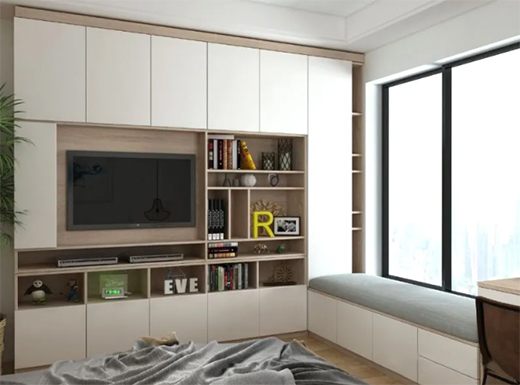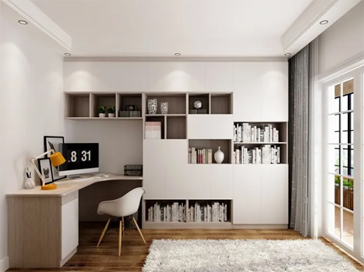很大部分的書房都會選擇把飄窗柜和書柜組合,然后在飄窗柜上增加收納柜等設計,這樣能夠節約更多空間。