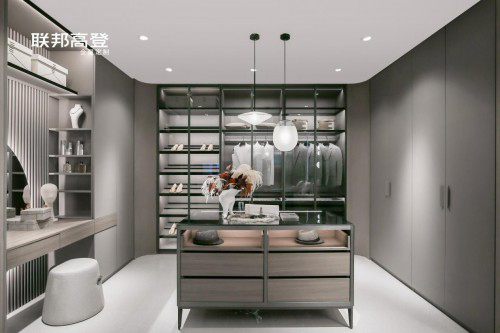 冷暖兼具,靈活百變的U型衣帽間,打造洄游式穿搭動線,讓置物換衣成為一種生活藝術享受。