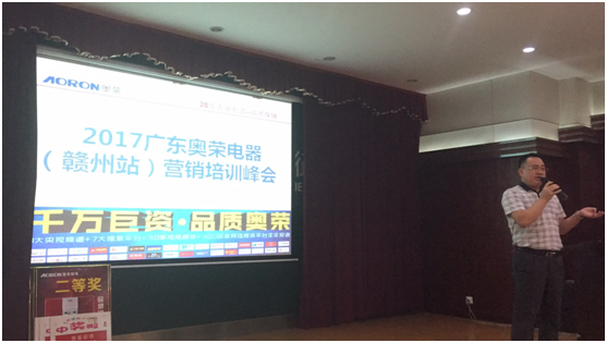 下午2點,會議正式開始。會議首先由廣東順德奧榮電器銷售有限公司總經理林總登臺亮相并為贛州區域的經銷商們簡單介紹了奧榮集團的發展歷程以及奧榮未來3—5年的品牌發展規劃!林總詳盡且極具挑戰性的發展目標讓現場家人們都感到了壓力,但不少現場的經銷商家人們表示這將會是推動他們進步前進的動力!