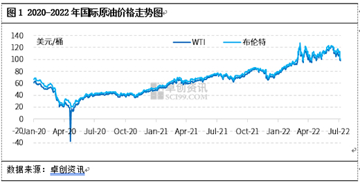 2022年上半年,原油呈現(xiàn)震蕩上行的走勢。2022年第二季度,原油整體波動區(qū)間在95-125美元/桶之間。與去年同期相比,整體運行區(qū)間上移。從同比角度來看,處于近三年同期高位。一季度,WTI期貨均價為94.29美元/桶,二季度WTI均價漲至108.53美元/桶,環(huán)比上漲15.1%,同比上漲64.2%。