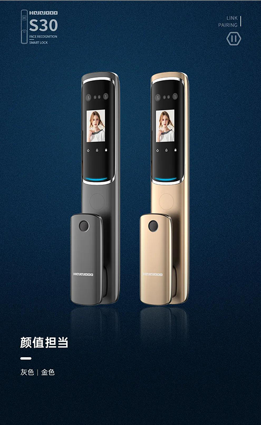 高級的美,不動聲色!作為一個面向年輕消費者的品牌,皇家金盾在智能鎖的外觀設計與色彩搭配上一直都有著自己獨到的認知。皇家金盾S30人臉識別全自動智能鎖有灰色、金色雙色可選,不同的顏色,搭配與眾不同的你!