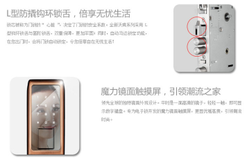 先進(jìn)的FPS半導(dǎo)體活體指紋識(shí)別技術(shù)及防指紋觸摸屏的運(yùn)用,無(wú)需全部指紋,0.3秒即可成功解鎖;電磁防輻設(shè)計(jì)有效屏蔽小黑盒,竊賊根本無(wú)法破門而入。
