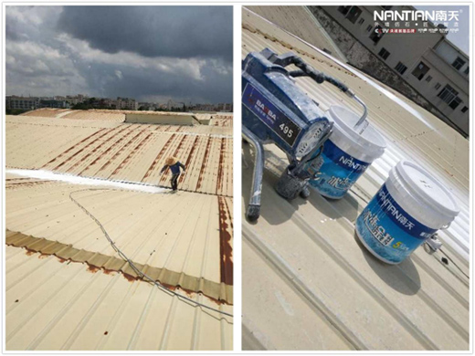 施工現(xiàn)場,南天涂料工程項目負責(zé)人向有關(guān)人員詳細介紹了南天(冰凍)隔熱涂料的相關(guān)功能優(yōu)勢,并圍繞施工進度給予了重要反饋。南天負責(zé)人表示,(冰凍)隔熱涂料由南天產(chǎn)品團隊竭力研發(fā)、傾力打造,成品前后經(jīng)過了多項產(chǎn)品實驗認證,其反射隔熱、裝飾性強、附著力強、耐候保色、節(jié)能環(huán)保、耐久耐污等功能特點得到有效佐證。當(dāng)該涂料產(chǎn)品投入到梧州體育訓(xùn)練基地的柵頂改造后,定能有效反射太陽輻射中可見光波段(0.4-0.72μm)和近紅外波段(0.72-2.5μm)的部分能量,在極大程度上降低建筑室內(nèi)溫度,起到高效的隔熱效果。