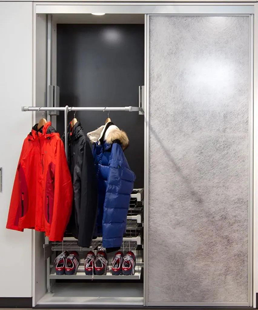 •設置外套臨時掛衣區以及次凈衣收納區