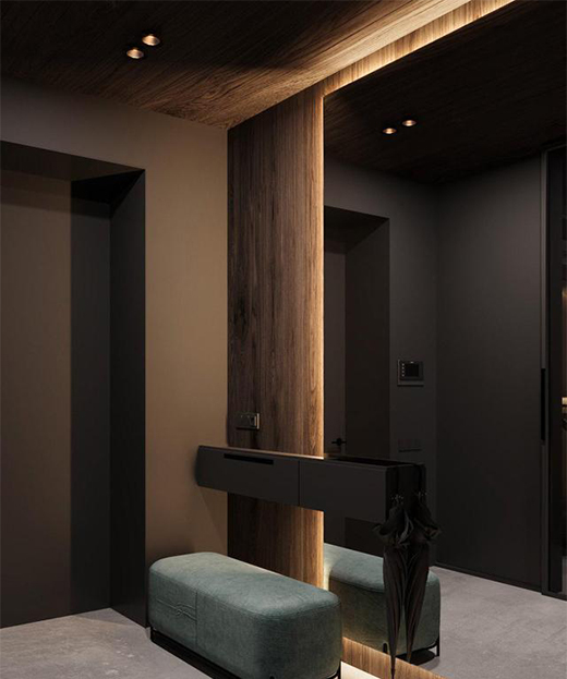 燈線在地面的運用,主要在于墻與地的交界處。此外,還有臺階或地臺的下方,不僅可以劃分區(qū)域,也可以起到提醒與警示的作用,注意腳下。
