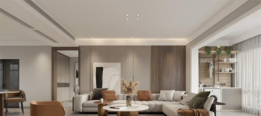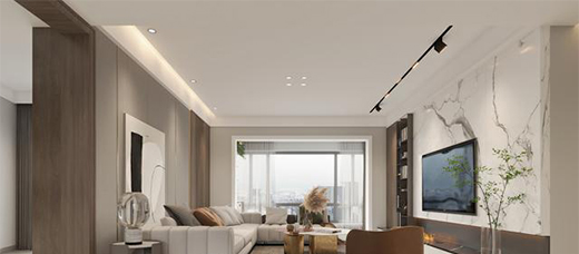 全房天花吊頂使用無主燈設計,簡潔時尚更是現代流行的趨勢。全屋燈光以磁吸燈和射燈以及燈帶照亮。