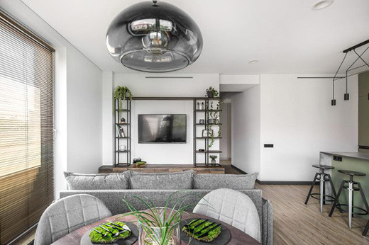 墨綠色的柜子是不是有深海海藻的感覺,簡約的吊頂,精致簡約。