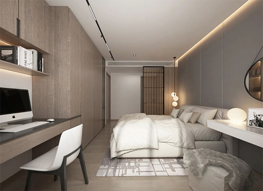 房間的燈光設(shè)計(jì)也是點(diǎn)睛之筆,搭配整體風(fēng)格做無(wú)主燈設(shè)計(jì),照明的同時(shí)不失裝飾性。