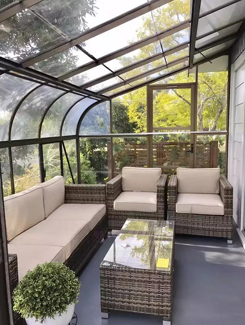 6.玻璃陽(yáng)光房給人帶來(lái)舒適大氣之感,頂樓露臺(tái)陽(yáng)光房裝修讓你同雨露陽(yáng)光嬉戲,加上玻璃天窗的話(huà),還能同享漫天星辰。看看,如何讓你更親近每日晨曦。