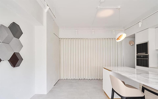 本次工裝案例采用Novacolor的Marmorino ks威尼斯城堡打造,整體風(fēng)格簡約現(xiàn)代,不僅在空間層次感上突出建筑物的簡潔性,在視覺上還營造出柔和、生動的陰影效果,其如云朵般的視覺美學(xué)讓人沉醉。
