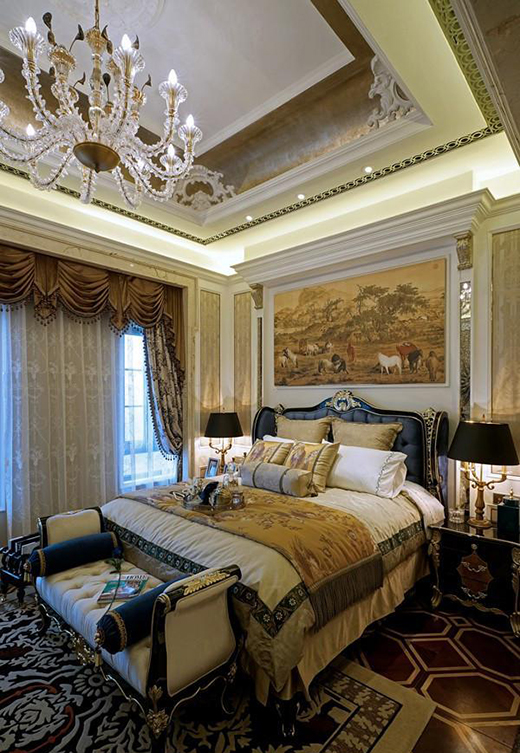 金色風格給人印象是富麗堂皇、雍容華貴,在歐式裝修風格中,對金色元素的運用更是達到了淋漓盡致的程度,這也是很多喜歡金色的業主傾向于選擇歐式風格的原因。