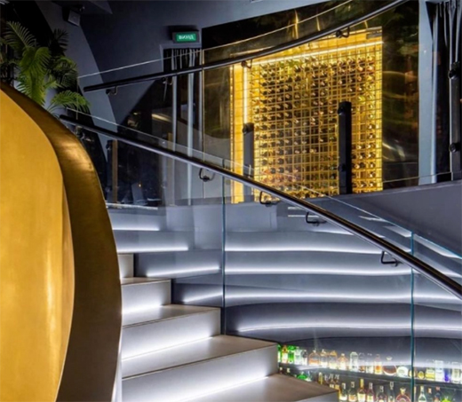 尤勒貝特Travertino (洞石)粗獷的紋理表面擦上mori金色,增加了空間的豐富性與溫暖感,帶給人流光溢彩的視覺效果,彰顯出對優雅品質生活的向往和追求。