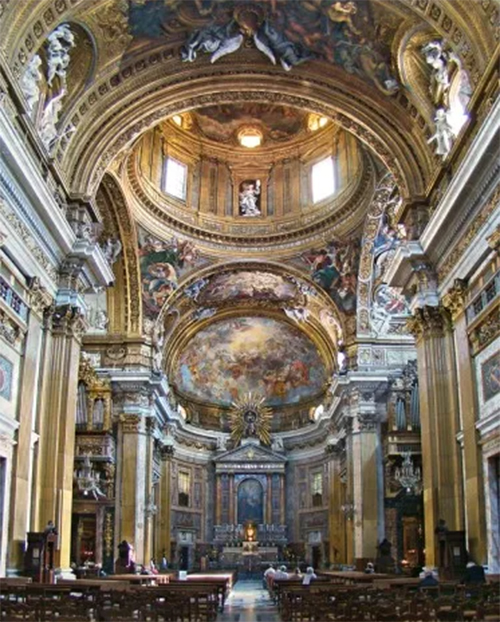 “巴洛克”的原意是奇異古怪的。特點是外形自由,追求動態,喜好富麗的裝飾和雕刻、強烈的色彩。羅馬的圣卡羅教堂,充滿前衛現代的氣息,是其代表。