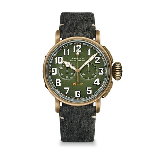 搭載品牌知名的El Primero導柱輪計時碼表機芯,Zenith全新Pilot Type 20 Chronograph Adventure腕表,再度將來自航空儀器的靈感,延伸到設計當中。此枚腕表充滿濃濃的軍事風格,不僅以粒面卡其綠打造表盤,表殼特別選以青銅材質制成,讓整體充滿濃濃復古基調。而鈦金屬表背更鐫刻上Zenith飛行儀器標志,呼應腕表與品牌的核心精神,并備有迷彩鱷魚皮表帶與卡其色小牛皮表帶可供替換。